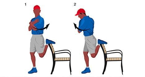 Start off your golf stretches by first stretching the quadriceps. Quadriceps are the muscles in the front of the thighs. Start with this stretch: