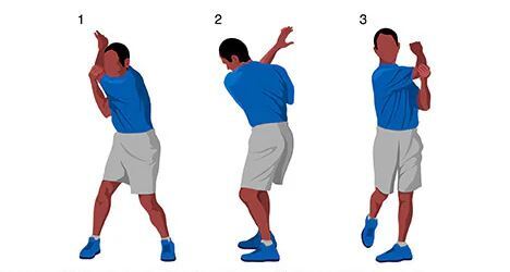 Before you start your golf stretches, you may want to warm up with 5 to 10 minutes of light activity, such as walking around the practice tee. If you have time, finish the full series of golf stretches found here. Hold each stretch for about 30 seconds.