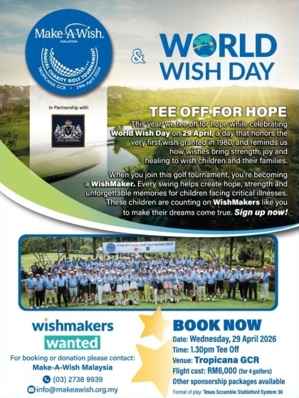 Marking World Wish Day, Make-A-Wish Malaysia’s Annual Charity Golf Tournament, “Tee Off for Hope”, aims to turn every swing into something profoundly simple: the chance for a child with a critical illness to feel joy again.